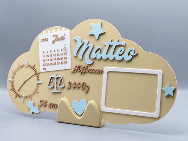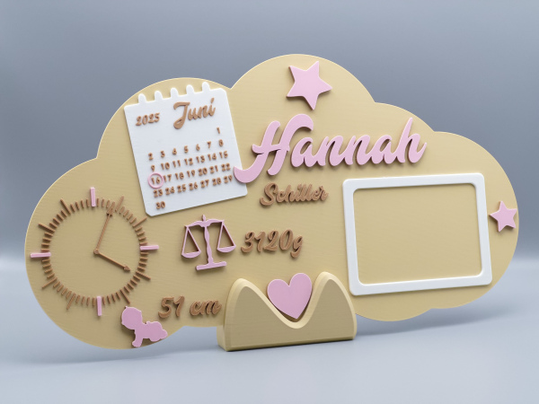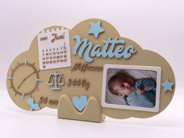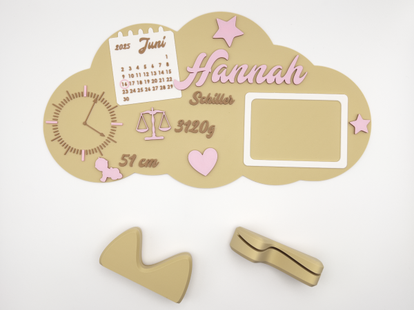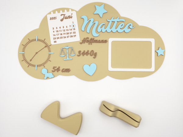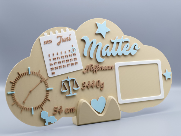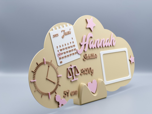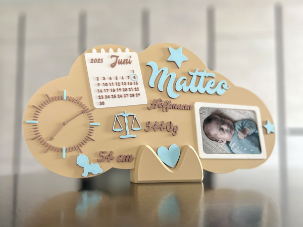 Halte die wichtigsten Eckdaten des neuen Erdenbürgers auf besonders stilvolle Weise fest: Anders als klassische Holzschilder wird dieses XXL-Geburtsschild hochwertig im 3D-Druckverfahren aus leichtem, stabilem PLA gefertigt – dadurch ist es langlebig, bruchfest und perfekt für jedes Baby- oder Kinderzimmer geeignet.