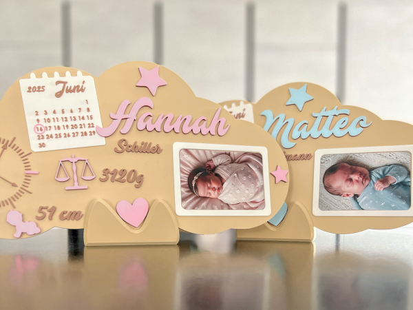 In moderner 3D-Optik gefertigt, wird dieses Schild zum einzigartigen Blickfang und ist liebevoll in Wunschfarbe individualisierbar – ideal für Eltern, Großeltern oder als besonderes Präsent für frischgebackene Familien.