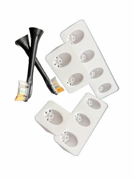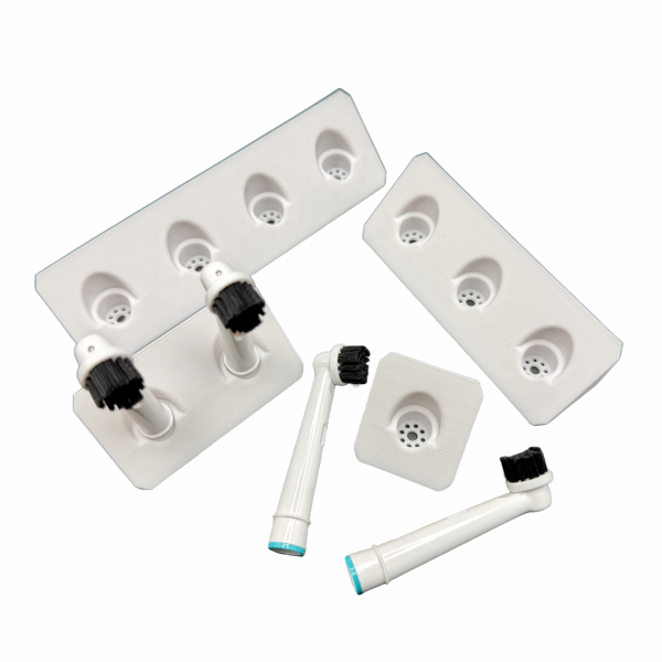Der BrushDock ist ein kompakter, langlebiger und hygienischer Zahnbürstenkopfhalter für eine trockene, saubere und platzsparende Aufbewahrung von Aufsteckbürsten.